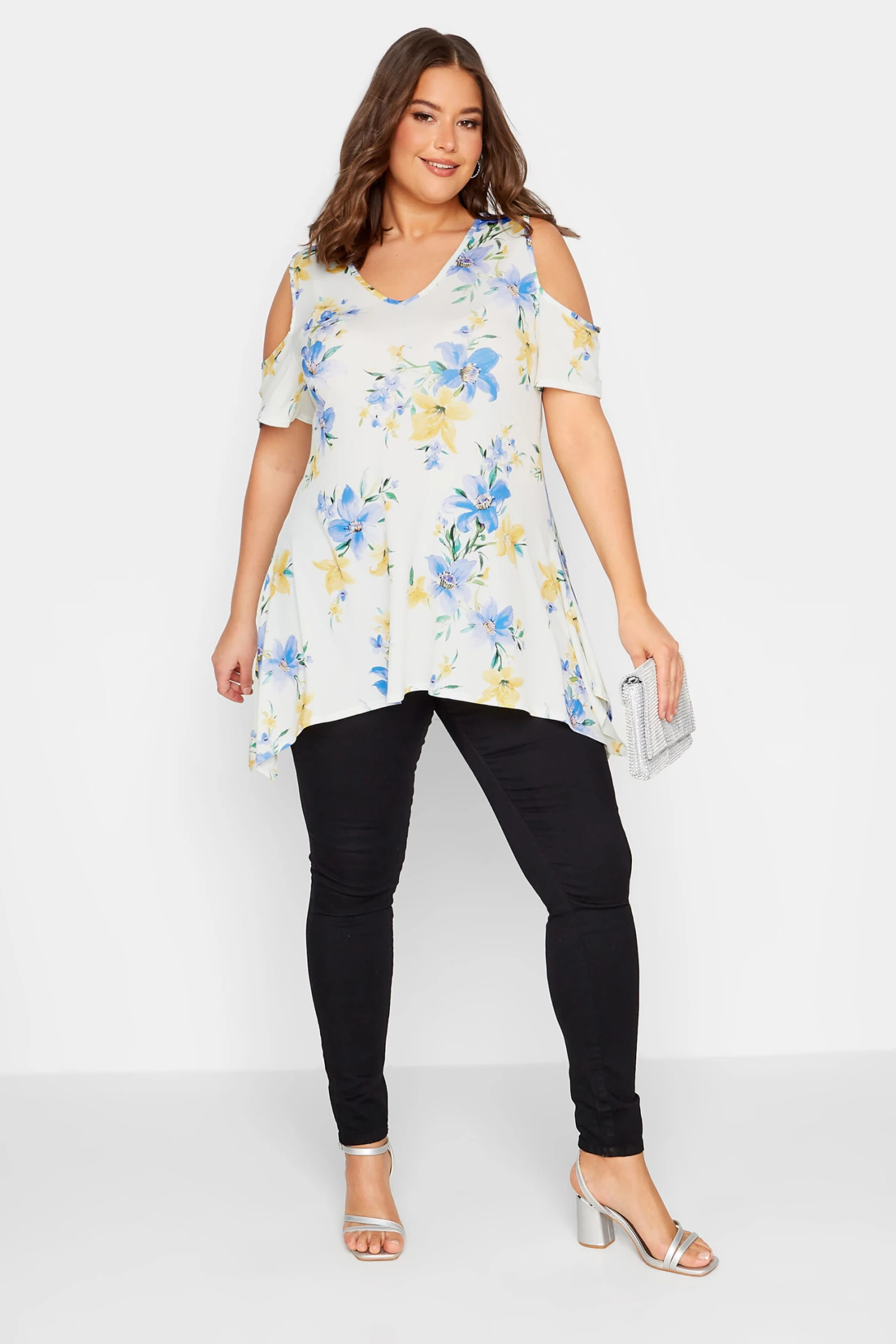 Did someone say girls night? This new-in Yours London top is a must-have. Made from a stretch jersey fabric, it features a v-neckline with a hanky hem in a cold shoulder style, complete in a floral print. Pair with jeans and heels to finish the look.