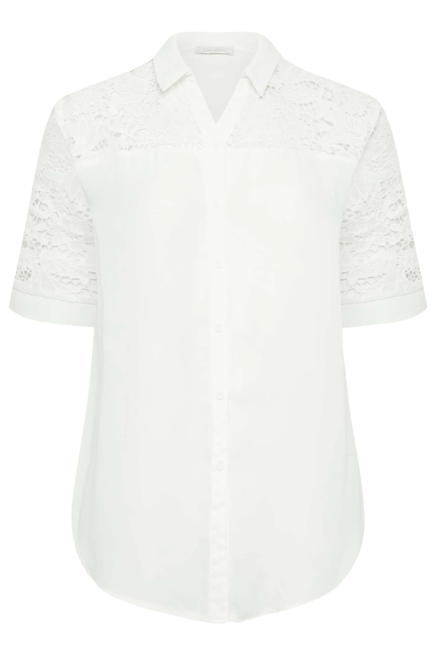 YOURS LONDON Curve White Lace Insert Shirt -Saga Dresses Shop 69a87fff 270d 44 162139 D