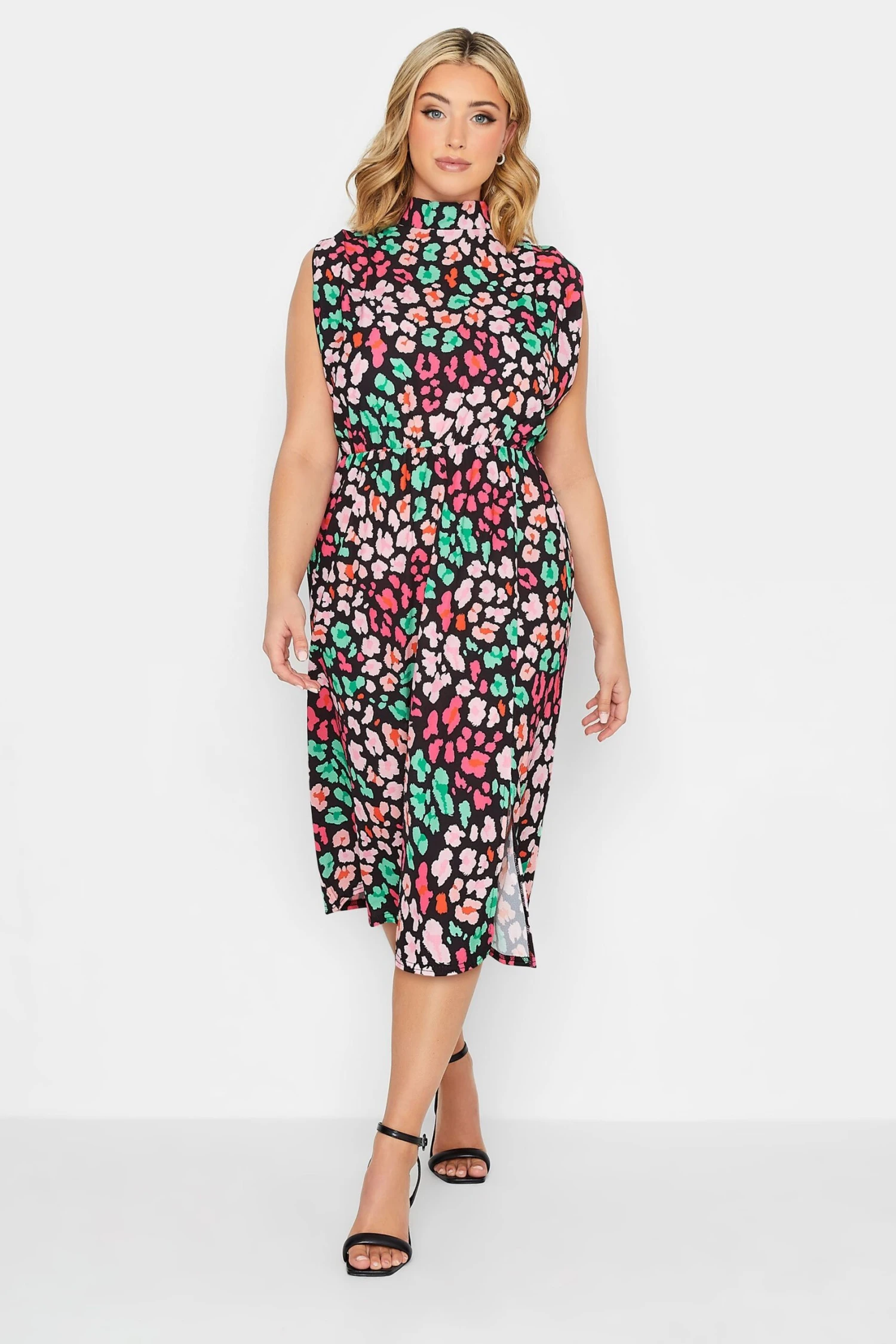 YOURS PETITE Curve Black Animal Print Halter Neck Dress