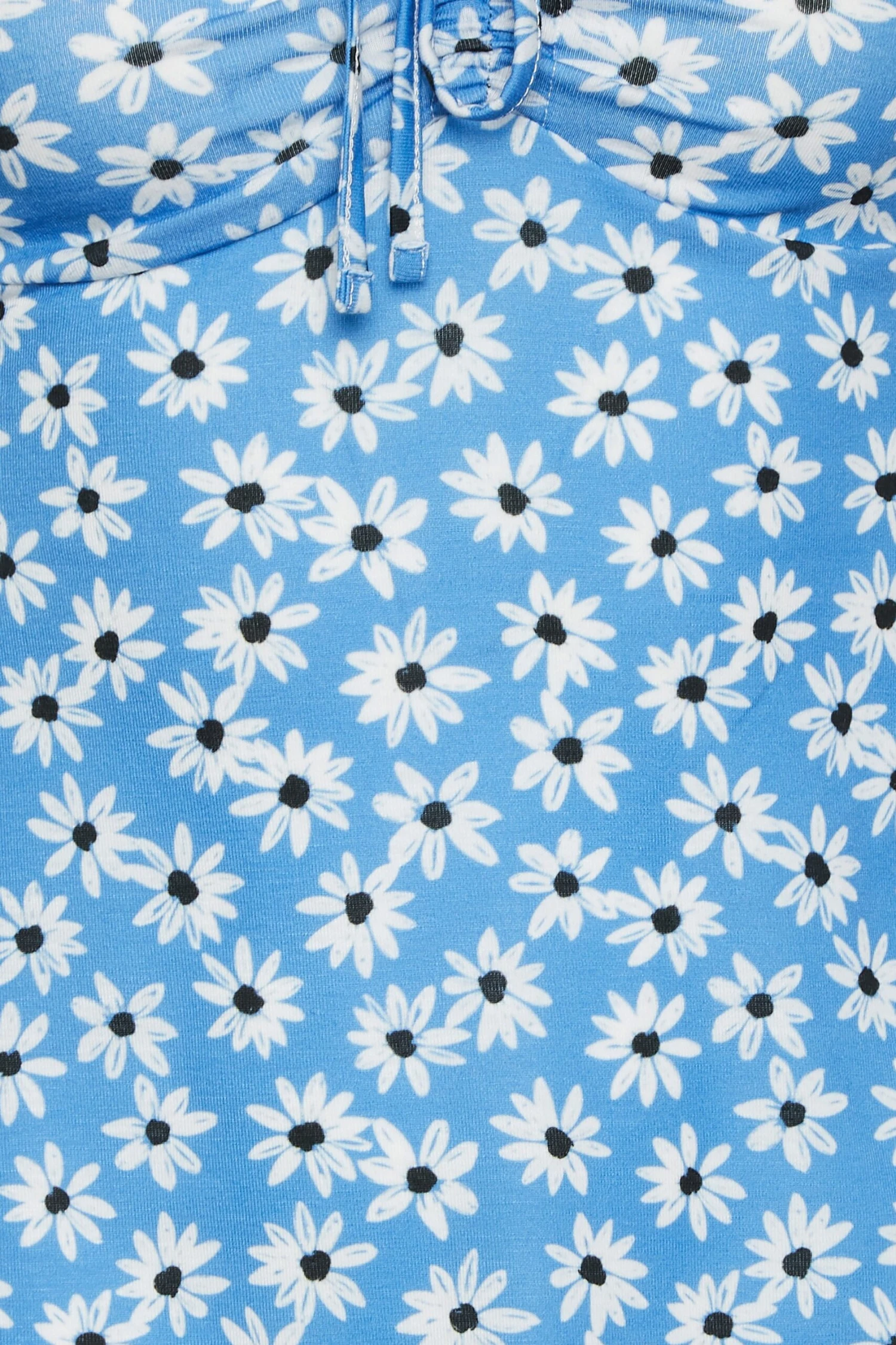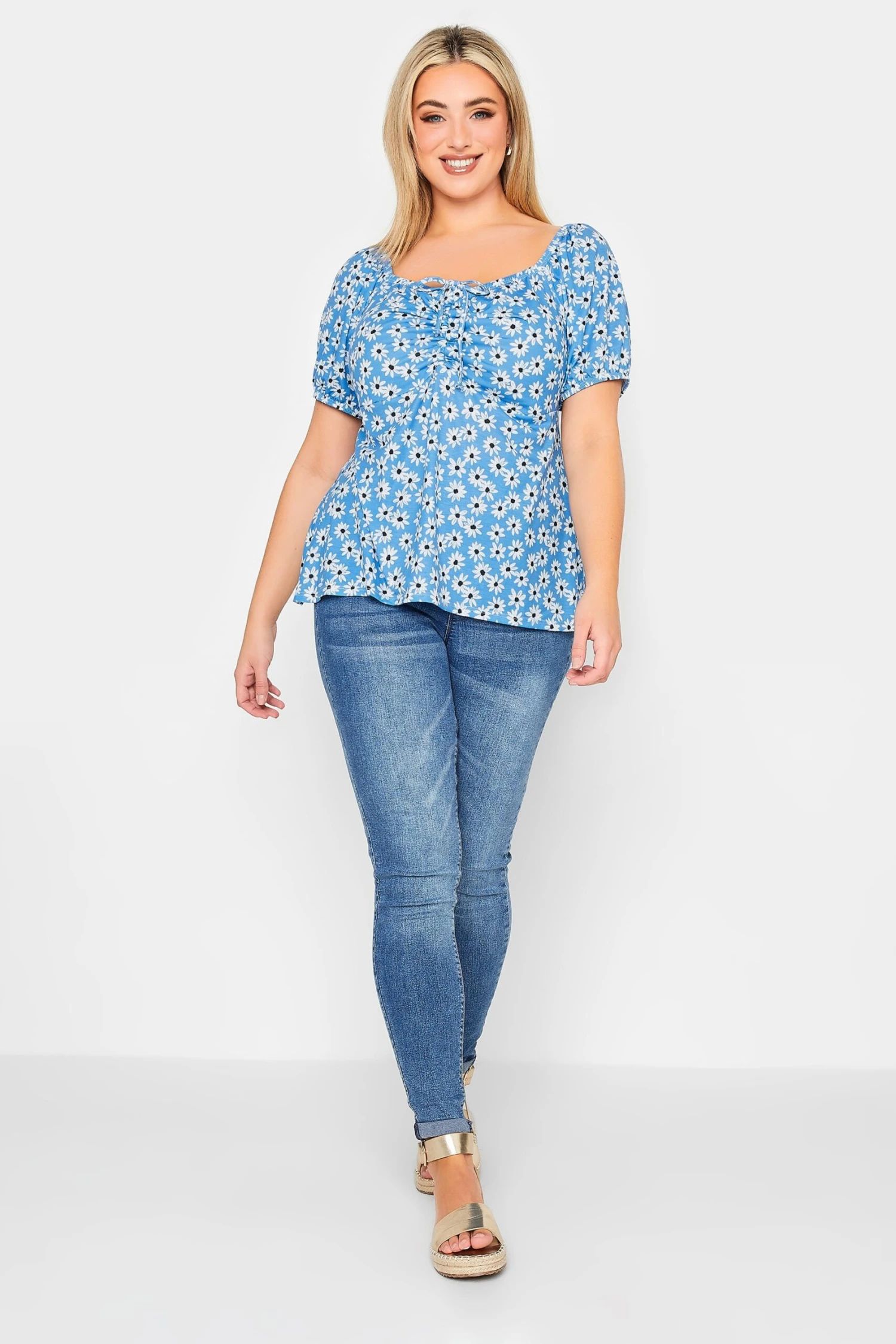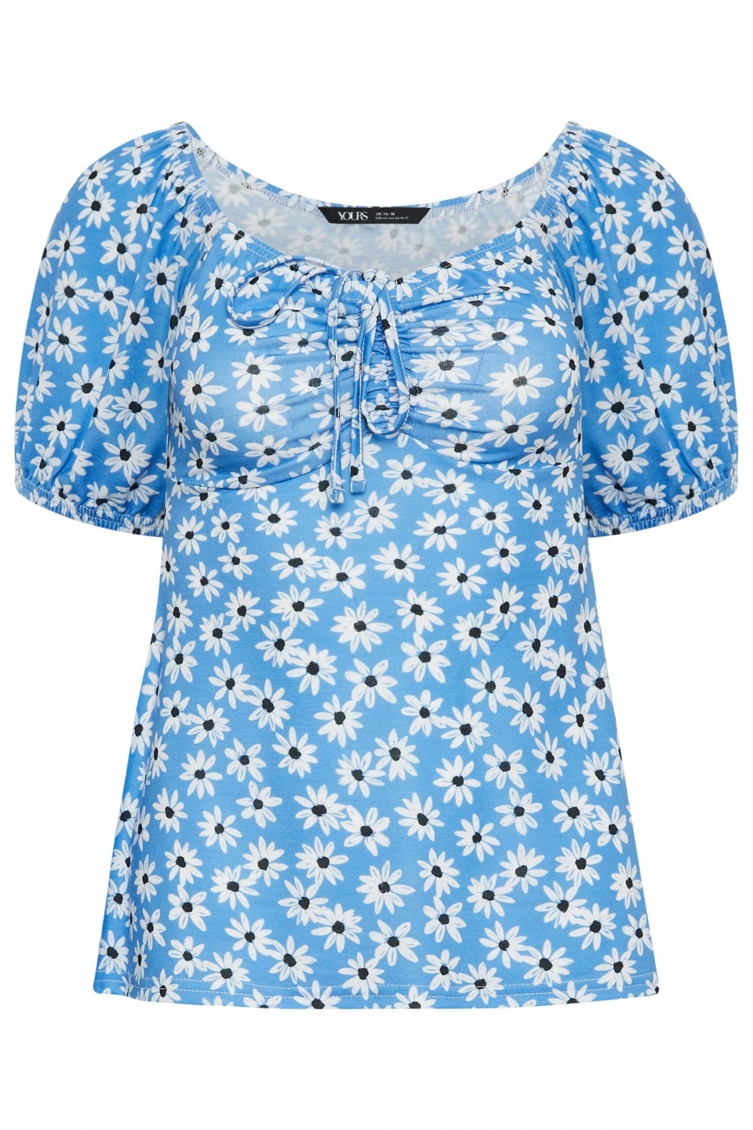 This new in petite top is a must-have for the new season! Made from a comfortable jersey fabric, this top features short sleeves in a daisy print, with a scoop neckline and a ruched front. Style with jeans and sandals for the perfect summer look.
