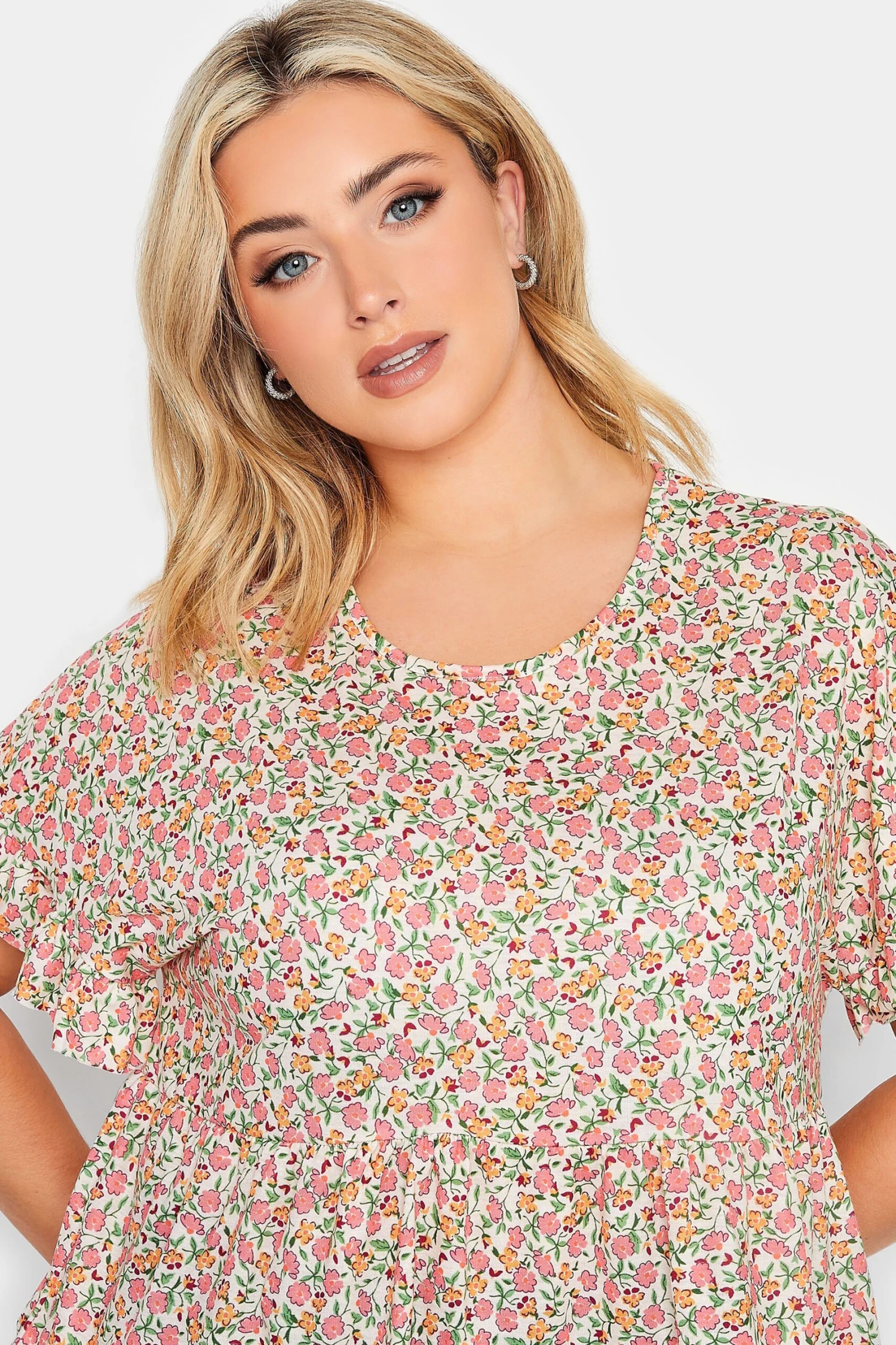Introduce this peplum top into your new season collection. Made from a comfortable jersey fabric, it features a ditsy floral print with short frill sleeves and a scoop neckline. Team with jeans and sandals for an effortless summer look.