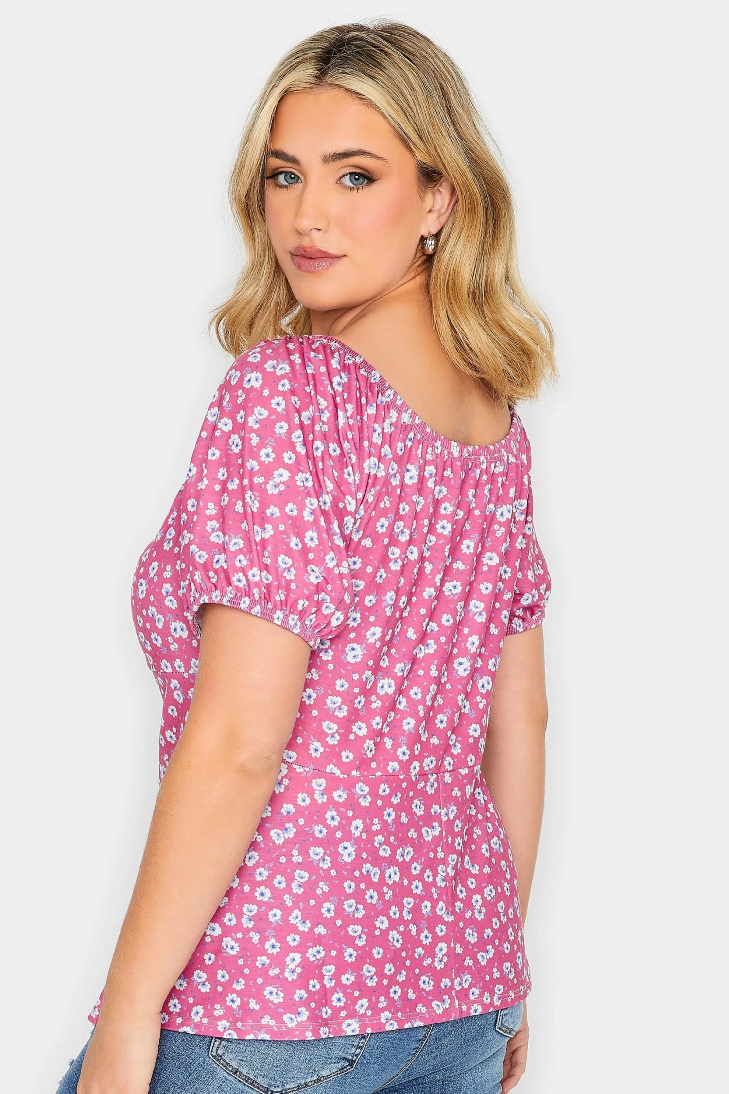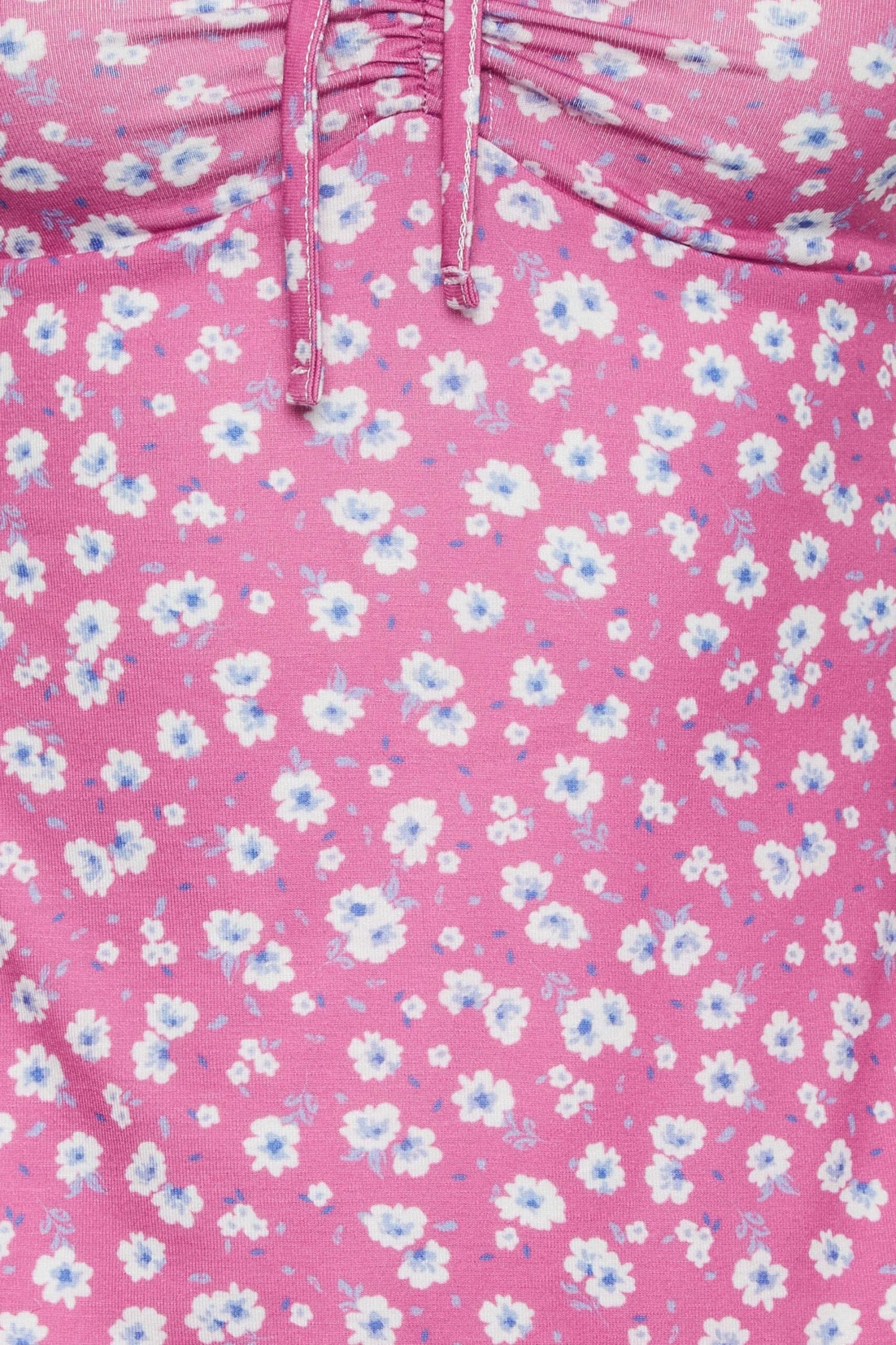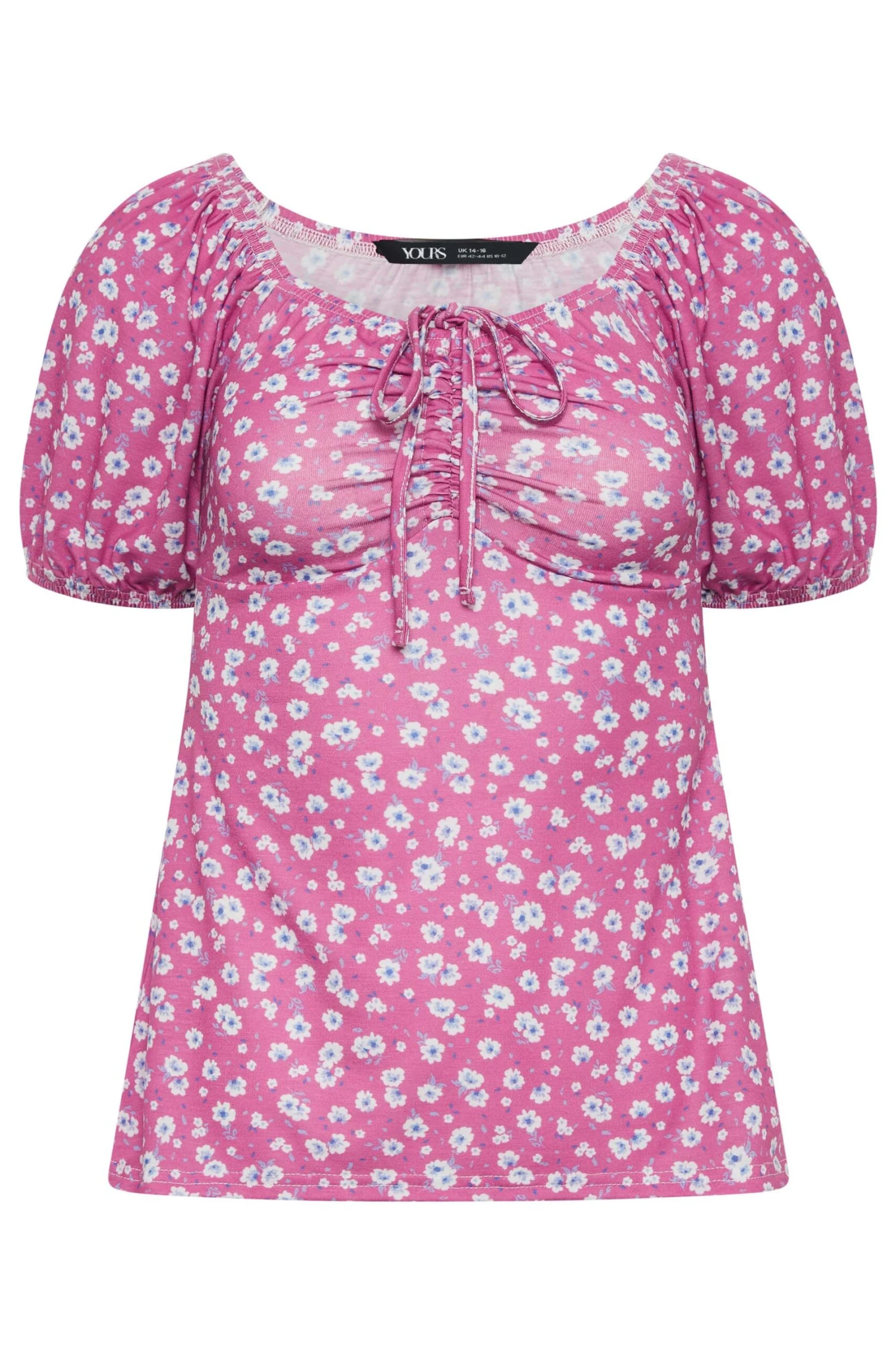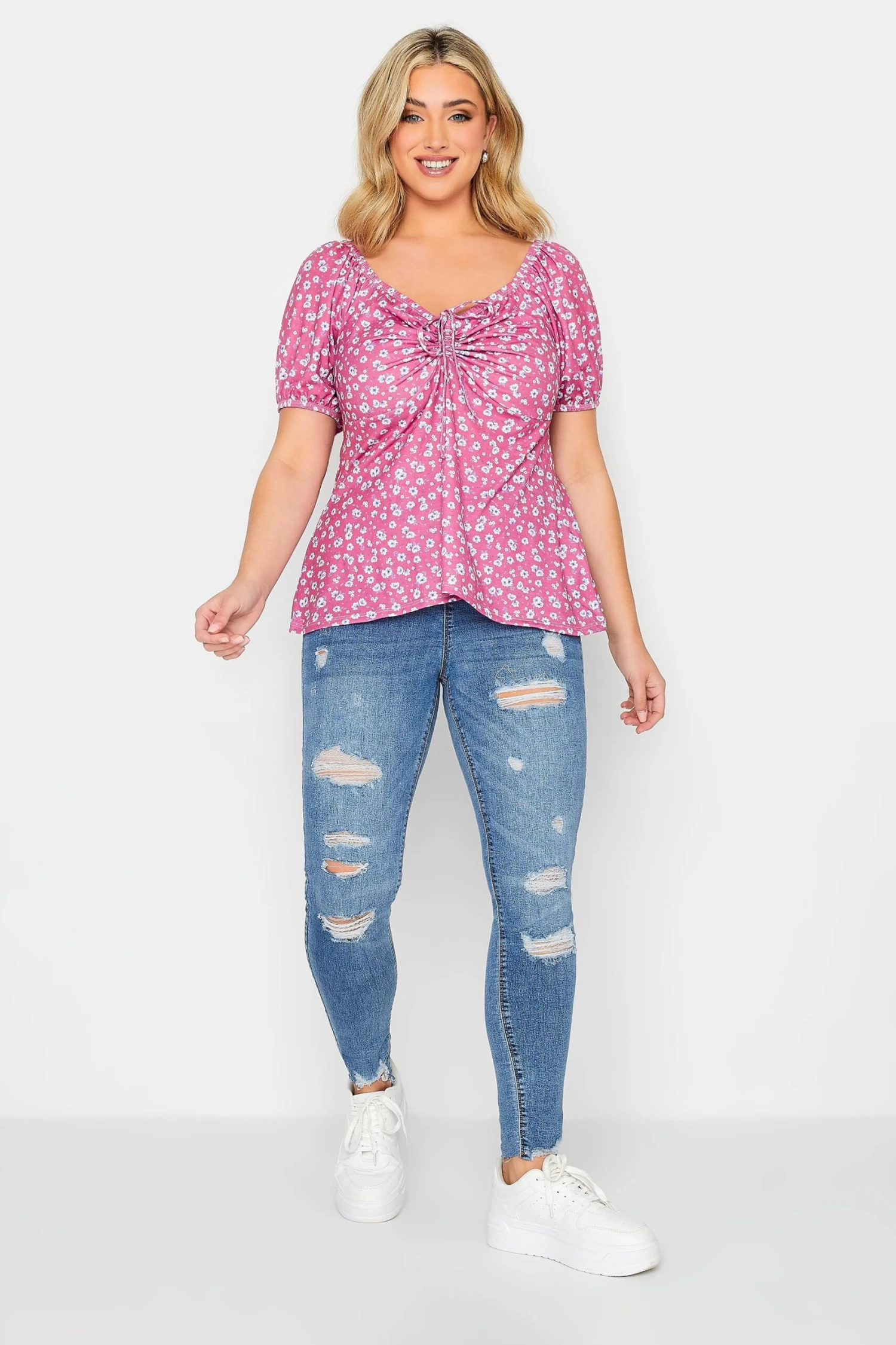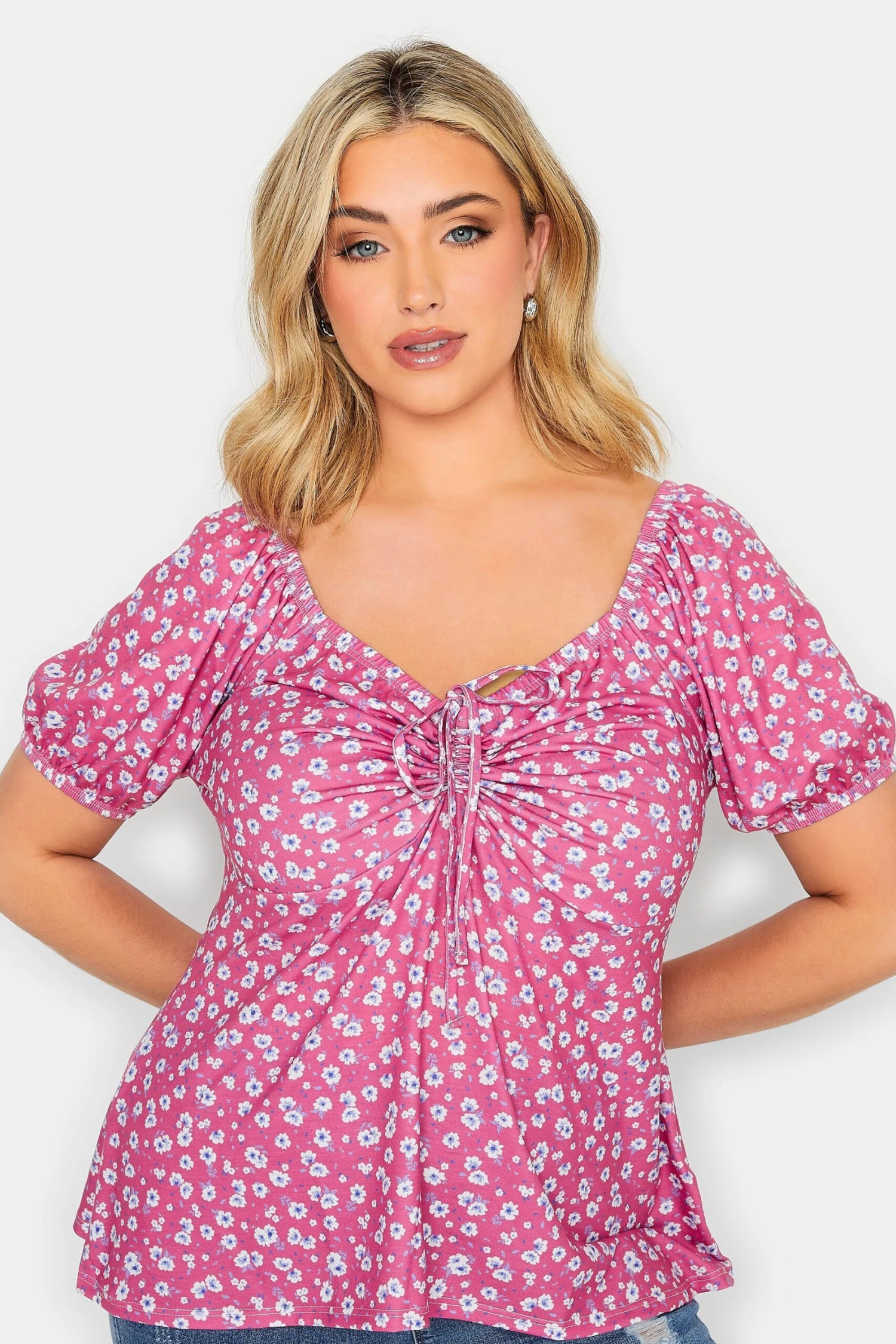 This new in petite top is a must-have for the new season! Made from a comfortable jersey fabric, this top features short sleeves in a ditsy print, with a scoop neckline and a ruched front. Style with jeans and sandals for the perfect summer look.