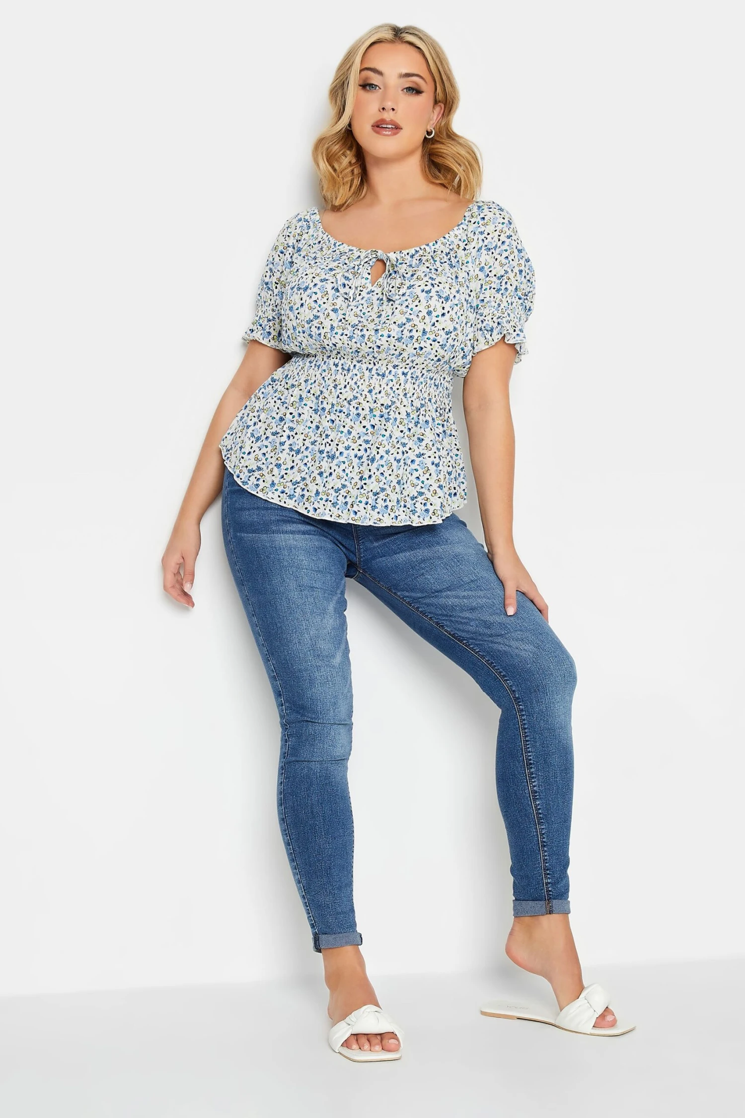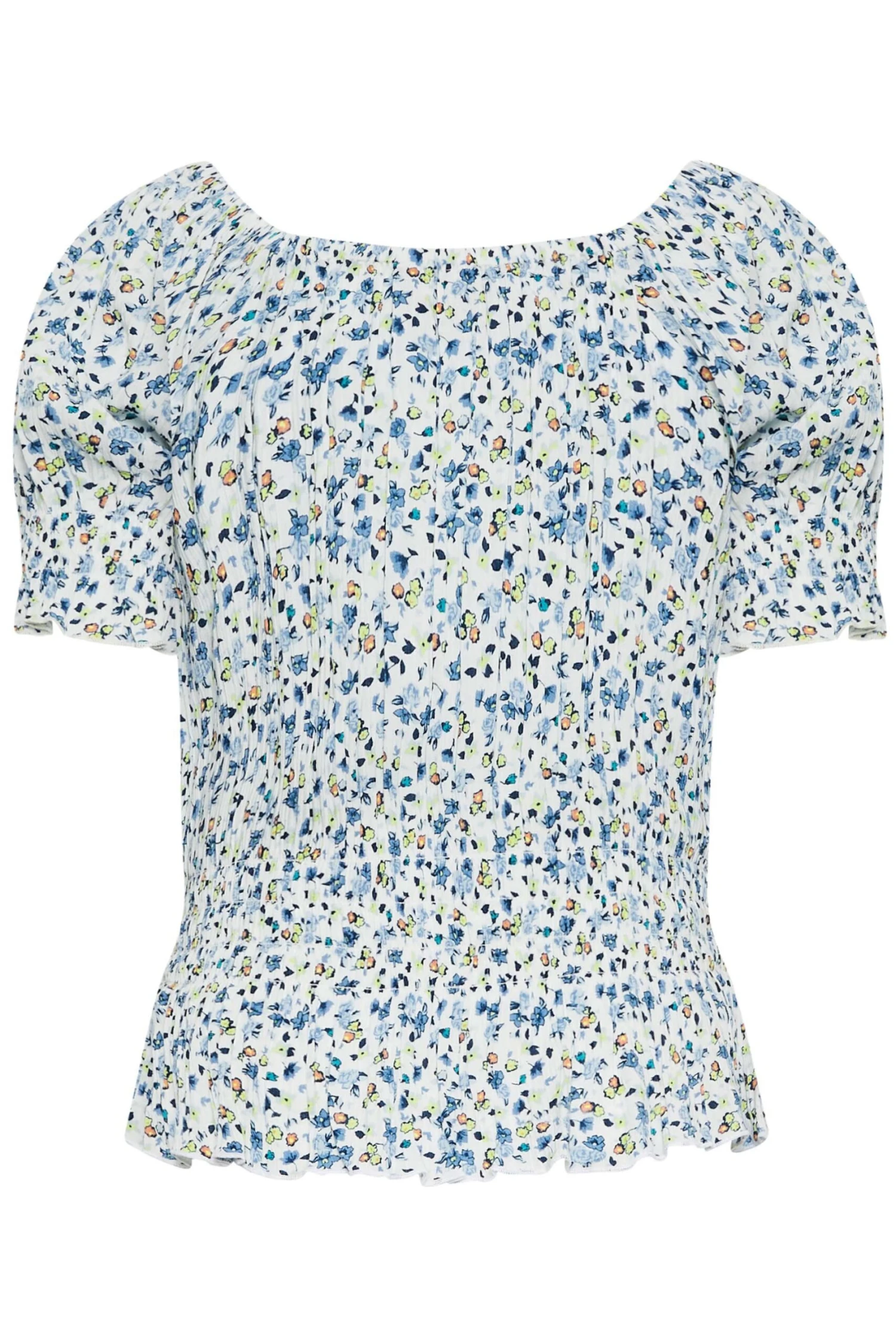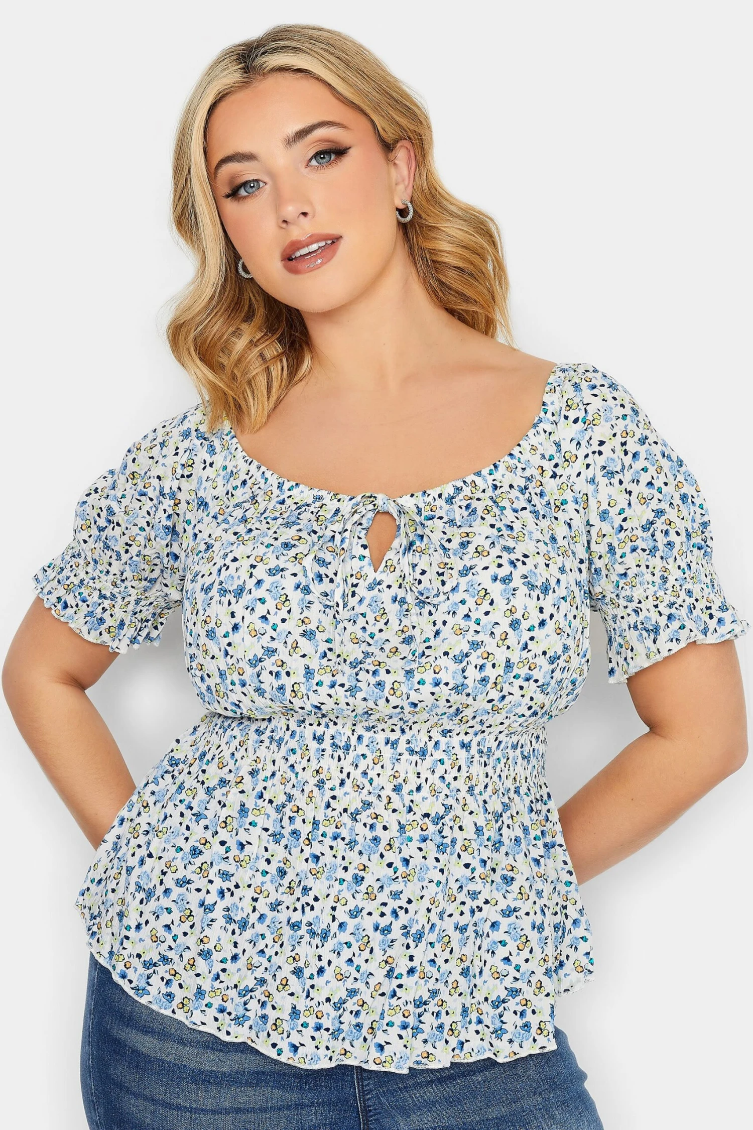 Get ready for the warmer weather with this new-in bardot top. Made from a comfortable woven fabric, it features short sleeves, with a neck tie and a shirred waistband, complete in a floral print. Simply style with linen trousers and sandals for a go-to holiday look.