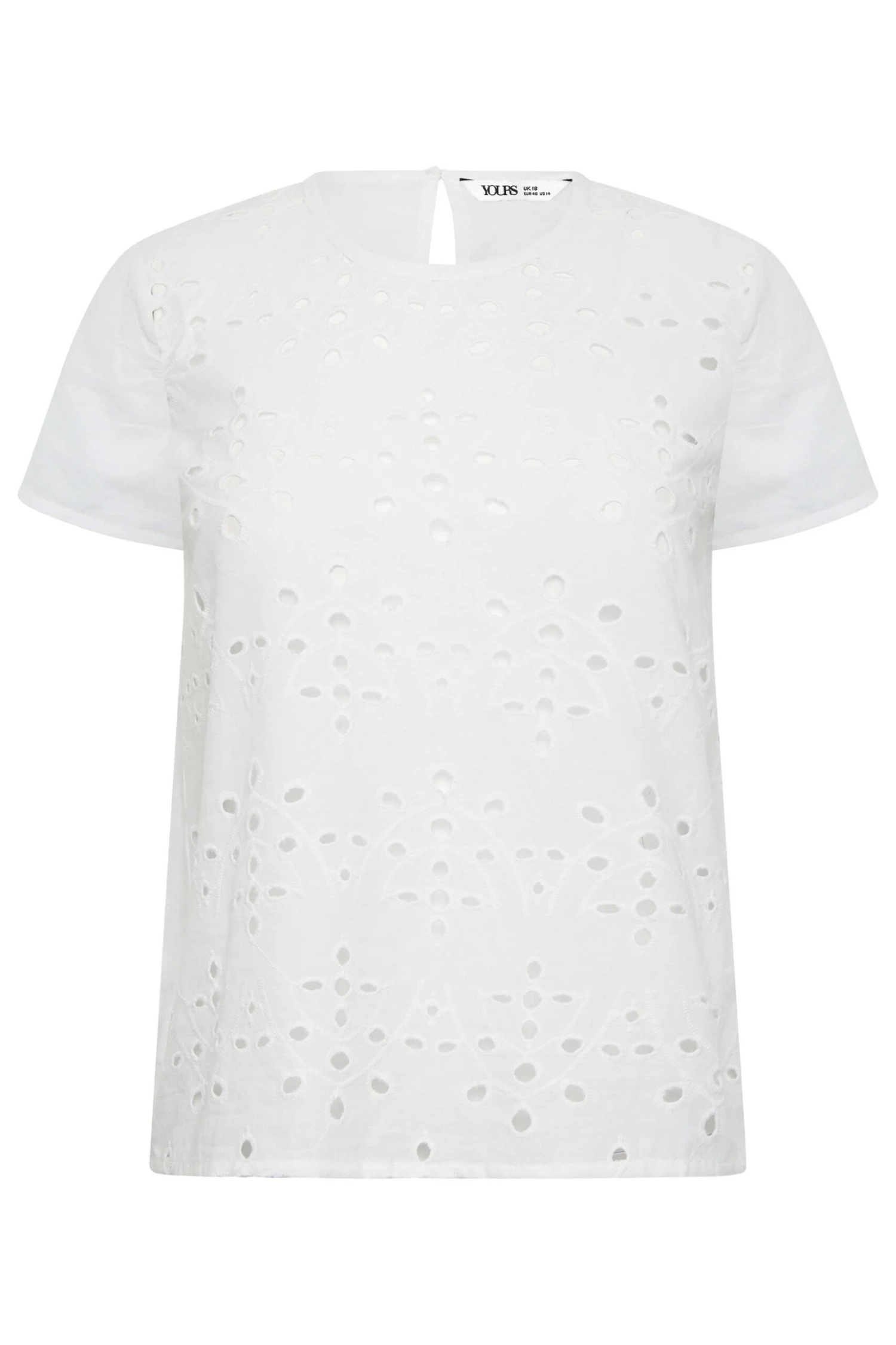 Elevate your basics with this must-have top. Made from a comfortable woven fabric, this top features short sleeves, a scoop neckline, and a Broderie Anglaise design. Wear with jeans and trainers for a comfortable everyday outfit.